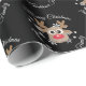 Have a little fun with your wrapping this year with this cute cartoon character reindeer wishing everyone a Merry Christmas and personalised message. Text can be changed. Cartoon reindeer character with red shinny nose with white script on a black background with white snowflakes and white script typography. If you need help personalising it more then send me an email and I would be happy to help. designsbykatz@gmail.com Happy Holidays!