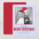 Ho Ho Ho Merry Christmas, Santa Hat Photo Greeting Card. Santa Hat can be moved to fit the photo, or duplicated. This design features Christmas holiday Santa hat moveable, family photo picture 1 one, fun funny whimsical cute editable, a simple minimalist red blue white, whimsical typography script font, a trendy stylish calligraphy script text, ho ho ho merry Christmas, a Christmas holiday photo greeting cards, humour cute Santa north pole, cartoon Santa Claus hat