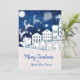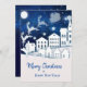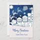Christmas Cutout Town and Santa Claus at Night Holiday Card