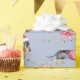 This adorable Dachshund wants to wish your friends and family a Merry Christmas. A light blue background with an adorable Dachshund wrapped in a Christmas outfit, Santa hat, and Christmas lights.