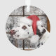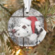Dalmatian dog wears a Santa hat and looks out the window at the snow waiting for Christmas and watching for Santa dog lovers Christmas holiday acrylic ornament