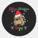 Christmas Dawg Bulldog Santa Hat Xmas Winter Snowf Classic Round Sticker