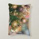 Christmas pillow with images of Christmas tree and ornaments.