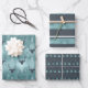 Christmas Deer Antler, Stripes, Trees Teal ID864 Wrapping Paper Sheet