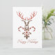 Festive Christmas design features deer head with red antlers, crossed candy canes and customisable "Happy Holidays" text