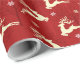 This decorative wrapping paper features a charming pattern of leaping deer against a rich red backdrop. Snowflakes and trees complement the playful silhouettes, creating a joyful and festive atmosphere.