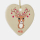 Christmas deer with red balls on beige background ornament. Noel text can be personalised.