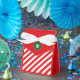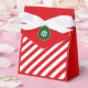This diagonally striped red and white Christmas favour box is eye catching for the holidays with customisable greeting on the back.
