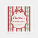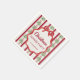Christmas dinner party red retro stripes pine bow monogrammed napkins template, Christmas party personalised napkins, pinecone winter greenery Christmas party printed napkins , winter berries bunch, grandmillenial Christmas personalised napkins, red bow wavy border christmas party monogrammed napkins, personalised Christmas decor