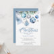 Christmas dinner party classic silver blue baubles and snowflakes snowy fir trees watercolor template invitation instant download