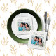Personalize and add your own family photo. A green frame decorated with a cone and pine greenery. Elegant white background. Add your family name and year.