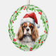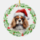 Holiday Christmas ornament with a watercolor Cavalier King Charles Spaniel and watercolor Christmas wreath design. Add the dogs name to the design and it's the perfect gift idea for that puppy dog lover you know, or yourself!