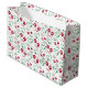 Christmas DOG PAW PRINTS and LOVE HEARTS Festive Gift Bag, designed to giftwrap your special pet present for your favourite fur baby. The design shows paw prints with hearts in Christmas colour palette with festive elements. This paws and hearts Gift Bag would be ideal as a finishing touch to your Christmas gift for a dog mum and dog dad or other animal lover. Matching gifts and accessories available.