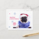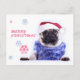 Christmas dog pug in santa hat holiday postcard