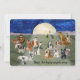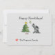 Here are 17 wet-nosed cartoon dogs of Christmas singing howls for the holidays at the full moon with a musical note in the back..On the back is a linen texture, a pug and a cute cartoon Xmas tree waving. Up top is text you can edit that reads "Bark! the hairy angels sing~". The entire card can be customised. Some of the cute dog breeds pictured include a chinese crested, scotty terrier, beagle, afghan, cocker spaniel, pug, papillon, and a few mixed breeds. In the background is a small Christmas tree. HAPPY HOWLIDAYS TO YOU!