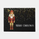 Doormat shown with a black background and a festive Christmas nutcracker print.