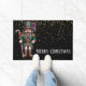 Doormat is shown with a black background and a festive Christmas nutcracker print.