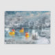 Bright yellow rubber duckies wear Santa hats and paddle around a snowy winter pond Christmas holiday tissue paper. Will only fit this size correctly