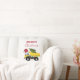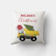 A cute illustration of a Christmas dump truck construction truck vehicle wearing a Santa hat and decorated in Christmas lights with words "Merry Christmas" transporting a festive Christmas tree. Perfect for boys and girls who love construction trucks, toy trucks or heavy machinery. An ideal Christmas pillow for dump truck enthusiasts big or small, girls or boys.