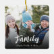 This design features a Christmas holiday photo family keepsake, modern whimsical typography font, trendy stylish calligraphy script, picture photography momento holiday, minimalist minimal typography template, with trendy stylish calligraphy script text, a Christmas holiday home décor tree, Christmas photo ornament gift, simplistic elegant whimsical script, custom customized personalized name