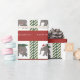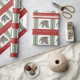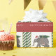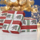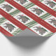These trendy and cute Christmas elephants, a parent and little baby elephant, are returning home with their perfect Christmas tree. Both are totally in the holiday spirit with matching Santa hats! The rest of the design features a green stripes design, and a red rectangle at the bottom. Thin lines of gold foil decor line the edges. (Please note the wrapping paper does not contain actual gold foil, just the look of it.) The text says "Happy Holidays", but you can easily change the message on the wrapping paper by using the template.