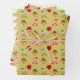Christmas Elf and Bells on Golden White Stripes Wrapping Paper Sheet