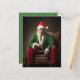 A portrait picture from Donald Trump sitting in a brown leather chair wearing a Christmas elf costume