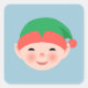 Christmas Elf in Green Hat on Light Blue Square Sticker