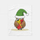 An illustration of a shy happy elf owl with green santa hat and red present with yellow ribbon. This cute cartoon design is a gift idea for owl lovers, bird lovers, and fantasy or magical movie lovers. Are you excited to receive your gift on Christmas?