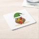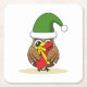 Christmas Elf Owl with Present Square Paper Coaster