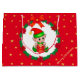 Christmas elf, pine wreath, poinsettias & stars large gift bag