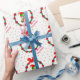 Christmas elf, pine wreath, poinsettias & stars wrapping paper