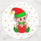 Cute Christmas baby elf, pine wreath and Christmas balls Table Confetti. Text can be personalised.