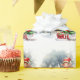 Christmas elf with a sack of gifts in a snowy winter landscape