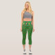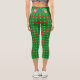 Modern, cute Christmas elf on gree, red star pattern on deep green Leggings.
