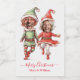 Cute dancing christmas elves couple food label with place for 2 photos. Personalize with photos and names.