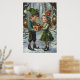 Celebrate the spirit of giving with this heartwarming scene of two cheerful Christmas elves sharing a beautifully wrapped present in the snowy woods. Their striped socks, pointed shoes, and holly-topped hats add a playful charm, while the cosy doors nestled in the tree trunks suggest a hidden village full of holiday magic. Whether you're decorating for the season or gifting to someone who believes in the magic of Christmas, this enchanting artwork brings joy to every wall.