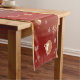 This beautiful table runner is decorated with an enchanting Christmas pattern: On a red background with darker and lighter shades, a shower of beautiful multi dimensional snowflakes will bring you in winter ambience. The little gifts and the golden baubles with light reflections bring the festive touch. And the chic comes from the smart gold border on each side. For a family dinner or a festive party, this piece will surely impress your guests and enhance your holiday decor.