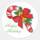 Pretty decorative holiday stickers, with graphics of a decorated candy cane made to look like embroidery. Happy Holidays in green script text is fully customisable to read what you want. Great for use as envelope seals to your holiday greeting cards and invitations.