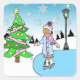 Christmas ethnic Ice Skater on Snowy Winter Day Square Sticker