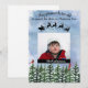 Beautiful, wintery card has watercolor painted pine trees covered in snow at the bottom with two red cardinals perched in them. Typography reads "May you never be too old to search the skies on Christmas Eve". A black silhouette of Santa's sleigh and his reindeer flies across the blue watercolor sky. Personalise with your favourite family photo and your name for a memorable holiday Christmas card for friends and family. Designed for you by Digi-Zazzle It. More designs available in my shop at www.zazzle.com/digiscrapthat.