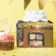 Graphic illustration of Santa's sleigh, Christmas tree, decorated house, in a snowy winter landscape. Wrap up your gift in this high quality, glossy paper and brighten up the holiday season.