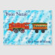 A repurposed German Marklin O scale model steam engine and passenger car, circa 1940's. The engine has been digitally given a new colour scheme for Christmas while retaining its character. Italian text reading, "Buon Natale" also appears. Add your own additional text.
