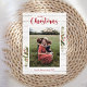Christmas Family Photo Greenery White Wood Flat Holiday Card