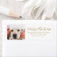 Custom photo image faux gold and white modern script elegant cute Return Address labels.