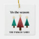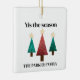 Celebrate the joy of the holiday season with this charming square ornament featuring a festive Christmas tree adorned with red and green glitter accents. Perfect for adding sparkle to your holiday décor, this ornament is customisable with your family name or year, making it a treasured keepsake.