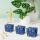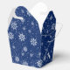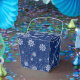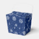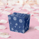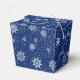 This favour box is shown in a festive Christmas holiday snowflakes print in the colour sapphire blue.