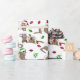 Cute Christmas ferrets in Santa hats with candy canes and string lights on a white background with scattered ornaments wrapping paper.