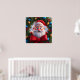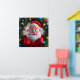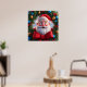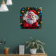 Adorable cartoon Santa Claus smiling amidst a decorated Christmas wreath adorned with ornaments and festive lights. Perfect for holiday themes, Christmas greetings, and cheerful seasonal depictions.