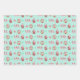 Christmas Festive Flamingo Pattern on Green Wrapping Paper Sheet